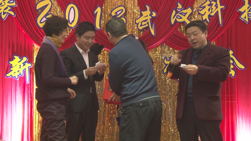 喜龙年初露春色,继蛇岁大展宏图!武汉科技报社的节目表演和精彩的抽奖环节给这个联谊会增添了更多的新年气氛。每个节目后都有精彩的抽奖环节,三等奖、二等奖、一等奖陆续抽出,台下观众的鼓掌声和欢笑声让联谊会达到一次又一次的高潮,获奖人的激动、抽奖幸运者的欢呼都给这个环节留下了更多的回味。