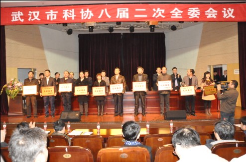 会议还隆重表彰了全国优秀科技工作者,武汉市学会工作先进集体,“金桥工程”、“讲理想、比贡献”竞赛活动先进集体和全市区科协绩效工作优胜单位。审议通过了《市科协八届常务委员会人事任免建议》和《关于工作报告的决议(草案)》。会上,武昌区科协、武汉激光学会、武桥重工科协分别从区科协推进科普资源共建共享、学会发挥学术引领作用、企业科协服务技术创新等方面作了经验交流发言。