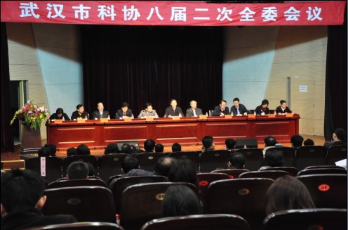 市科协网讯 八届二次全委会议于3月12日在武汉科技馆科学会堂隆重召开。市委副书记、政法委书记胡曙光出席会议并作重要讲话。市科协主席、党组书记卢光发作大会《工作报告》。武汉市委副秘书长张捷、市科协副主席罗俊、杨宗凯、陈安民、陈光勇、杨军、郑华,市科协巡视员张太玲等出席会议。市科协常委、委员,先进工作集体和个人代表和市科协系统干部职工共300余人参加了会议。会议由中国工程院院士、市科协副主席李建成主持。
