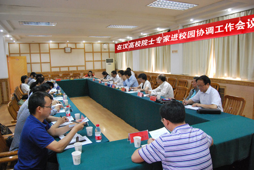 市科协网讯 为提升院士专家进校园活动的科技传播能力,不断满足公众特别是未成年人对理解科学精神、探索科学未知的需求,市科协、市教育局、中科院武汉分院于5月13日联合召开了在汉高校院士专家进校园工作协调会议,启动武汉科学家科普团新团员招募工作。市科协党组书记、主席卢光发、中科院武汉分院党组书记、副院长陈平平出席会议,市科协副主席杨军主持会议。华中科技大学、华中师范大学、华中农业大学、中国(武汉)地质大学等十余所高校,武汉科学家科普团,市科协、市教育局、中科院武汉分院相关处室负责同志参加了会议。
