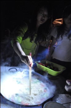幸亏有位妈妈曾经在农村呆过,51个人的伙食终于在她的巧手下解决了。“这让我想起老爸老妈生煤炉的场景,想不到我也体验了一回。”一位年轻妈妈笑道。