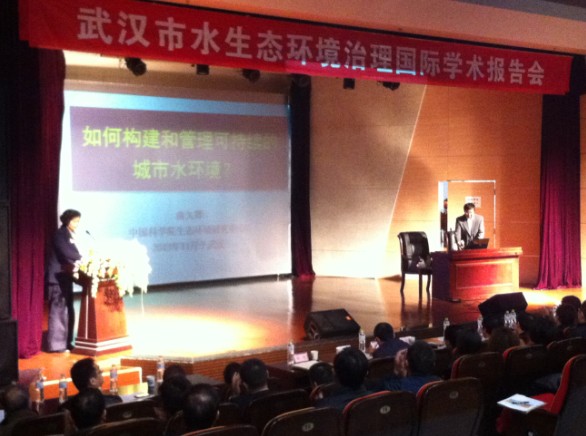 曲久辉院士的报告从污染源的控制和数据修复以及如何保障健康的城市水循环等方面分析了构建和管理一个可持续的水环境。他指出,水循环当中最重要的环节是水资源的开发和利用,武汉作为湖泊等湿地资源丰富的城市,不能仅仅把湿地作为水处理的工具,而应该作为一种保护的对象,从而将地下水的补充、污水的再生利用以及湿地保护等进行综合考虑来构建健康循环的城市水生态系统。