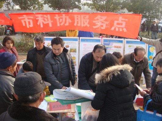 市科协网讯 1月14日下午,武汉市2014年文化科技卫生“三下乡”集中活动暨“2013年度三农经济领军人物”颁奖仪式在江夏区山坡街隆重举行。市委常委、宣传部部长李述永,副市长刘英姿,江夏区委书记汪祥旺等市、区领导出席了活动启动仪式,并向江夏金水农场村官霍计武等12名“三农经济领军人物”颁发了奖杯。共有1000余名农民朋友参加了本次活动。