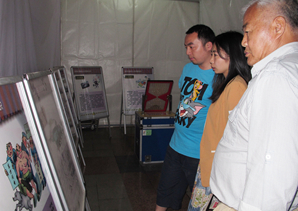 市民兴致勃勃地在展品前互动