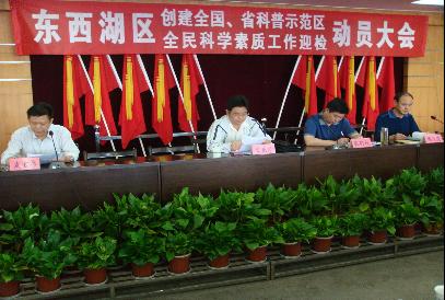 5月14日,东西湖区召开创建全国、省科普示范区暨全民科学素质工作迎检动员大会,部署省、市政府对《全民科学素质纲要》实施情况督查迎检和新一轮创建工作。区委副书记张明权、区人大常委会副主任黄良华、区政协副主席陶汉清出席会议。参加本次会议的有各街道(办事处、园区)、区直各单位主要领导和分管科技、科协工作的负责同志及科协秘书长。