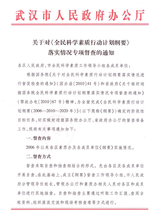 关于对《全民科学素质行动计划纲要》落实情况专项督查的通知