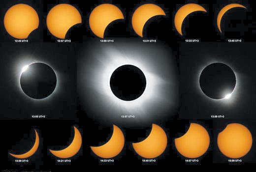 从初亏开始,就是偏食阶段了。月亮继续往东运行,太阳圆面被月亮遮掩的部分逐渐增大,阳光的强度与热度显著下降。当月面的东边缘与日面的东边缘相内切时,称为食既。此时整个太阳圆面被遮住,因此,食既也就是日全食开始的时刻。
