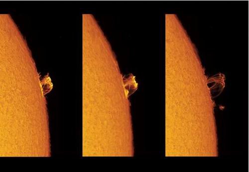 日珥是一种弧状的太阳活动,是太阳向太空喷射热气态物质,然后通过强磁场任用又回落至太阳表面。