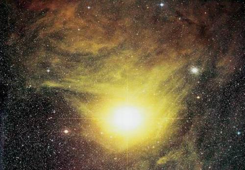 心宿二是一颗红超巨星,它的直径是太阳的数百倍,这颗恒星喷射的宇宙物质使其光线散射开来,因此地球上的天文摄影师拍摄的心宿二呈现明亮的黄色。