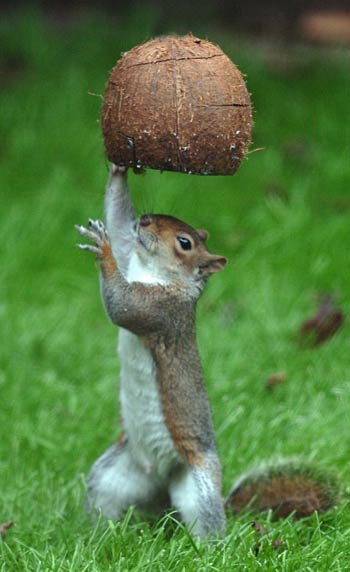 如果动物也有奥林匹克运动会,那么这只小灰松鼠将会轻松包揽举重金牌。这个“举重高手”是近日在英国费勒姆市的一个花园里发现的。它用力举起椰子的动作神似希腊神话中以肩顶天的巨神阿特拉斯。