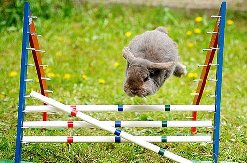 据英国媒体报道,英国唐克斯特市的一对小兄弟把自家养的6只宠物兔全部培养成了“障碍跳高小明星”。现年15岁的双胞胎兄弟马修·哈斯拉姆和托马斯·哈斯拉姆不久前受电视节目的启发,小哥俩决定把自家的6只宠物兔培养成运动员。于是,他们在院子里搭建各种各样的小障碍物,然后训练兔子们跳过这些障碍。在小哥俩的精心调教下,这6只兔子已成了“障碍跳高小明星”,从奔跑到腾空再到落地可以一气呵成地完成整套动作。