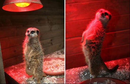 在英国伦敦贝特西公园儿童动物园中,一只海岛猫鼬正在红灯下取暖。据悉,海岛猫鼬是一种非常聪明的动物,能够表达复杂的思想。