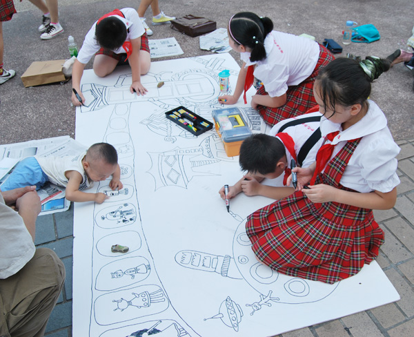 同学们现场描绘科幻画