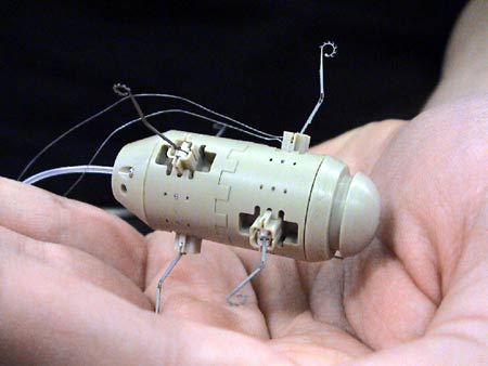 据安莎社8月14日报道,这个以昆虫为原型的机器人长10厘米,重80克。来自卢卡大学的安伯托说,在制作机器人的过程中,他们主要参考了跳蚤和青蛙的跳跃方式。在探测大面积土地时,采用这种设计的机器人比大型机器人效率更高。在这种机器人的身上还配备有汞探测器,这样就可以定位污染源。 来自比萨圣安娜高级学校的一位科学家称,通过模仿动物发展机器人制造是非常有效的,他们的目标就是发明在自然界中可以方便移动的小型机器人。他还补充说,国家地理中很多纪录片都是通过将摄像机放在昆虫机器人身上追踪动物行动而完成的。