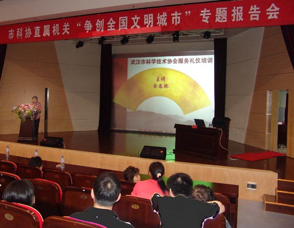 为了让文明礼仪走进科协机关,进一步增强干部职工的文明意识,接受文明礼节教育,自觉学会利用文明礼貌用话和文明礼仪,接待科技人员和社会公众。特邀请湖北省礼仪文化研究会秘书长余忠艳作《做文明公仆、创礼仪机关》专题报告。