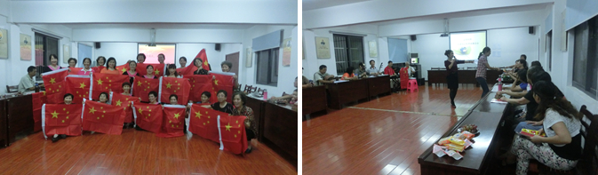 晚上7点活动拉开了帷幕,在活动正式开始之前,社区向居民们分发了国旗,并与国旗合影,以此来纪念即将到来的建国65周年。社区精心准备了50余道科普知识题目,竞赛内容涉及自然、环保、生活常识等多方面知识,比赛形式分为抢答题、互动题,居民们踊跃举手抢答。在一个多小时的活动过程之中,教师小区的“好声音”也登台献艺,小合唱民乐队伴奏《时间哪里去了》、舞蹈《梨花情》,男声独唱。