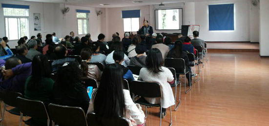 2014年10月16日下午,白沙洲街请来武昌区社区教育学院的马武军老师,在堤后社区活动室开展白沙洲街市民大讲坛活动,给社区居民讲谈手足与养生。