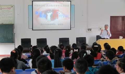 10月16日,邀请湖北省创新研究会会长袁伯伟教授到蔡甸区莲花湖中学为中学生作科普报告。袁教授带着创新的主题,畅谈《趣话眼睛——“看”的学问》,用讲故事、看图形的方式,讲述创新的关键在于思维,要打破思维障碍,在学习中有意识地多向思维,平时要注意灵活运用所学知识,敢想敢做,要从小事中培养创新意识。袁教授的报告隐含着对学生创新能力的要求,他形象地讲述,引得同学们捧腹大笑,现场气氛轻松活跃。