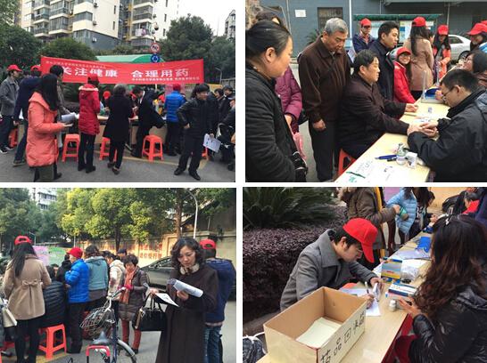 2015年1月13日下午15:30,在同济宝丰小区门口,药学院大学生志愿者们通过派发宣传单、摆放宣传展板的方式,向过往居民发起倡议,提醒居民们重视过期药品的处理,掌握正确的用药知识。居民们积极响应,纷纷从家中带来过期药品,投递到过期药回收箱中。志愿者们对回收的过期药品进行严格登记,确保过期药品不会再一次流入市场。居民张阿姨拿着用回收药换取来的小礼品说:“这些过期药大多数包装完好,如果没有仔细查看包装盒上的有效日期,很难发现这些药物已经过期,看了你们的宣传,到家里整理了一下,还真有不少过期药品呢,自己都不知道怎么处理,正好趁这次活动交给你们,而且还有小礼品换取,很实用很开心。”活动现场,大学生志愿者们还为前来咨询的居民免费测量血压、体重、血糖,让居民了解自己的健康情况,并给与一定的健康指导。