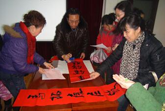 1月27日,这一天正值中国的民俗“腊八”节。江汉区常青街扬子社区的居民们在社区四楼多功能活动室举办了腊八节暨送春联喜迎羊年活动。邀请了江汉区文体局书画协会的书法家、书画爱好者们现场写春联,不少居民群众纷纷前来欣赏观看。书画家们挥洒笔墨,一幅幅祝福羊年的春联立马呈现在大家的眼前,社区工作人员将书法家们写好的春联免费赠送给小区居民,并提前祝他们新年快乐、身体健康、万事如意。