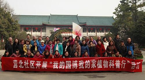 为丰富社区居民群众科普文化生活,2015年3月6日上午,在“三八”妇女节来临之际,硚口区汉水桥街营北社区组织广大妇女开展了“我的园博 我的家植物科普行”活动,带领社区居民走进武汉植物园,让广大妇女感受春天气息,与神奇植物约会,接受大自然生物多样性与生态环境科普知识熏陶。参加活动的妇女们有社区楼栋长、晨练队、手工坊团队等骨干人员及离退休老干部。硚口区科协科普部部长陈国祥、汉水桥街组宣科科长刘勇、副科长王拓等参加了活动。