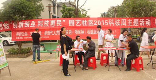 5月23日周六,青菱街园艺社区会同街卫生服务中心、湖北搏发律师事务所等单位同志10余人,在园艺新区广场内举行了“创新创业 科技惠民”科技周的主题活动。卫生服务中心的专家为居民免费进行了义诊,指导居民对常见疾病的预防和推介了一些健康的生活方法。湖北搏发律师事务所的律师现场为居民进行法律咨询。活动组在社区广场大型显示屏滚动播放环境保护的宣传教育片,现场发放绿色生活手册、份抗震减灾和反对邪教、破除迷信等科普资料300余份,展出安全文明出行科普展板10块,活动效果非常好,吸引了众多的居民参与,并得到居民朋友的广泛好评。