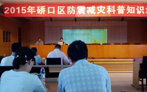 5月26日上午,简易社区组织社区居民前往区教育局参加地震科普知识培训。