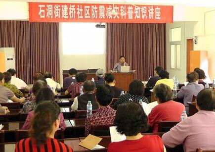 根据省、市、区关于开展2015年防震减灾宣传活动周的相关精神和要求,5月15日,石洞街办事处在建桥社区为60余名残疾人和社区工作人员举办了以“抵御地震灾害·创建平安武汉”为主题的防震减灾知识讲座,街办事处副主任介绍了地震基本知识及发生地震时如何应急避险与救助,发放了消防宣传手袋和围裙,增强了残疾人的防震减灾和消防意识,提高他们应对地震灾害的能力。