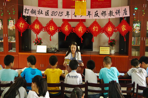为推动“创建无邪教社区”活动深入开展,强化打铜社区反邪教基础工作,实现反对邪教,从小做起,打铜社区在社区活动室为辖区青少年精心准备了一堂生动的青少年“反邪教”知识讲座。