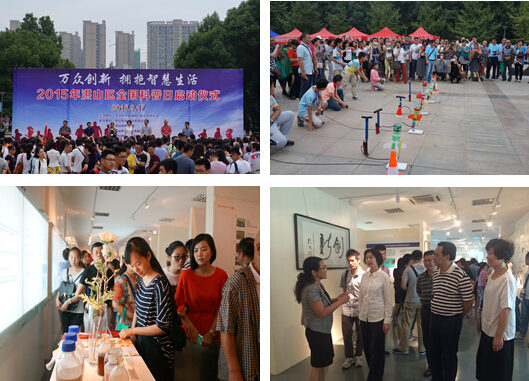 活动现场还举行了“万众创新,拥抱智慧生活”主题展。洪山区老科协组织了老医务工作者义诊。现场举行了我区中小学生获得国际发明展览会金奖、特奖作品以及实用新型专利成果展示。洪山区科协、洪山区卫计委、洪山区环保局、中南财经政法大学钱币博物馆、中科院武汉植物园、中南民大民族学博物馆、武汉康思农博物馆、武汉东湖海洋馆进行了现场展示、科技咨询和问卷调查,并发放了科普宣传资料。洪山区科技局联合武汉电动汽车示范运营有限公司、东风鸿泰武汉关山汽车销售服务有限公司进行了电动汽车展示和试驾活动。