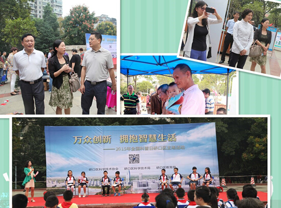 9月20日上午,区科协、区科技局和区教育局联合举办的2015年全国科普日硚口主场活动在硚口公园开幕。市科协副主席杨军、区政府副区长尹天兵、区政协副主席丁新超及有关部门、街道负责人亲临活动现场与居民、科普志愿者们一起参加了活动。