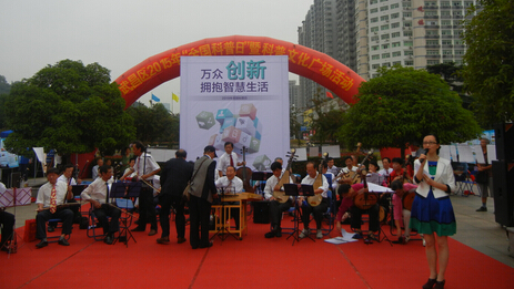 由30余名音乐爱好者组成的乐队演奏起了欢快的乐曲,拉开了科普知识问答竞猜活动的序幕。科普知识问答竞猜现场气氛活跃,市民、游人争相抢答。