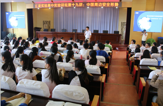 实验高中报告厅,陈教授以目前高中生所关注的“钓鱼岛问题与中国的战略选择”为课题给学生作了一场生动的科普专题报告。报告具体讲解了钓鱼岛概况及钓鱼岛问题的由来,钓鱼岛的战略价值和中国军事战略选择问题,陈教授授课风格活泼,见解独特,语言浅显易懂,将前沿的国际关系和学生关心的热点问题紧密结合,极大的调动了学生的好奇心和积极性。在提问环节,同学们都踊跃举手,陈教授把中国科学院的会徽送给了答对问题的同学。