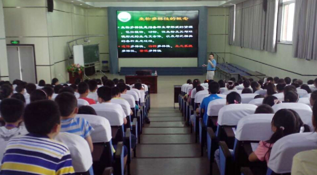 在实验小学,江明喜教授的到来受到师生们的热烈欢迎,400人的阶梯教室座无虚席,江教授以“植物多样性和保护”为主题,用通俗易懂的语言把孩子们带入到神奇的植物世界中,深受学生们的喜爱。