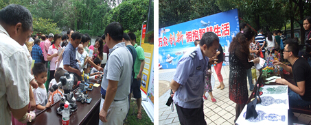 参加此次活动的有珞南街办事处、区少科站、博苑社区科普站。首先由珞南街党工委、办事处领导(副书记、政协联委主任)王华致辞,王副书记充分肯定了近年来我社区科普工作取得的成绩并提出今后的发展方向和要求。活动中机器人和飞机模型展示、科技知识问答、民俗风采展示(艺术剪纸、汉秀、铝艺)及现场月饼制作。吸引了众多市民前来学习科学知识、感受科技创新、领略科学魅力。
