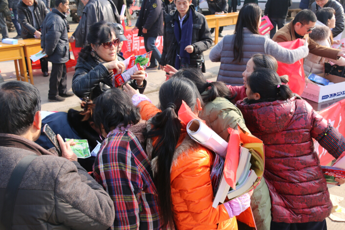 1月15日,江夏区文化、科技、卫生“三下乡”活动在金口街南岸一村广场启动,活动由区委宣传部牵头,区科协、区农委、区卫计委等18家单位结合各自职能组织上门服务,给农民群众送物资、送知识、送健康、送文明。
