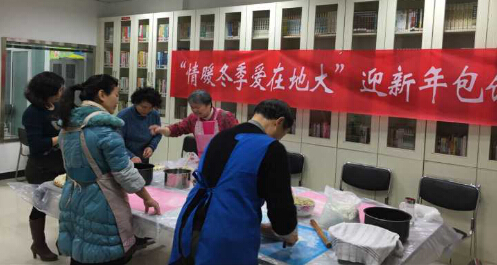 迎新年,包饺子。2016年1月15日下午,关山街地大社区组织了“情暖冬季、爱在地大”为主题的活动,特地邀请居民一起包饺子、吃水饺、一起迎新年。
