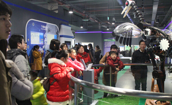 武汉科技新馆整个展馆分设“自然板块”的宇宙、生命、水展厅,“创造板块”的光、信息、交通展厅,另设了数学、儿童展厅等,展品数量达600余件,既将自然科学与工程科学有机地融合,又突出了鲜明的地方特点,展品表现的科技感、神秘感、刺激感深深吸引着大家。一进武汉科技新馆,炫彩的“天问树”就带给大家无尽的科技遐想,大家纷纷合影留念。在生命展厅,孩子们对生命起源产生浓厚兴趣,纷纷向家长询问,家长趁此机会向孩子们讲解宝宝是如何出生、成长的,让孩子们了解到父母的辛苦和不易。在交通展厅,几个男孩对高铁驾驶舱、飞机驾驶产生了浓厚兴趣,跃跃欲试。在机器人展厅,青联委员们、优秀科技工作者对3D打印机、会画沙画的机器人、黄鹤机器人等惊叹不已,感慨现代科技的发达。儿童展厅里,青联委员、优秀科技工作者与孩子们亲子互动,孩子们玩得不亦乐乎。
