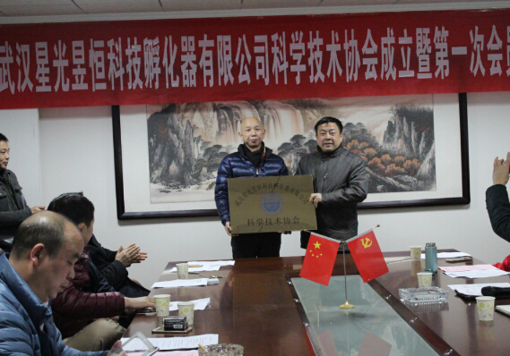 在成立大会上,宋卫华部长宣读了市科协《关于同意成立武汉昱恒科技孵化器有限公司科学技术协会的批复》;选举产生了武汉星光九鼎投资有限公司董事长韩守彪为主席的新一届科协领导机构;市科协陈光勇副主席为新成立的科协组织授牌并讲话,他强调:企业科协组织成立后,要深入开展“讲、比”活动,提升创新创造能力;要大力开展学术交流活动,激发科技人员的活力;要广泛开展科普宣传活动,提升员工科学素质;要建好科技工作者之家,搞好科技服务保障。