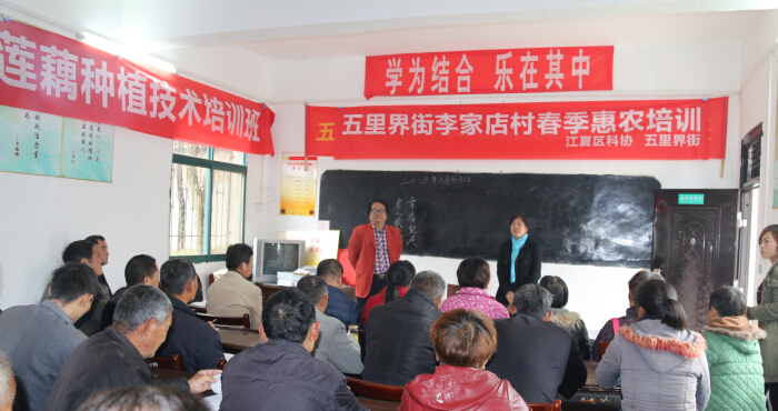 江夏区科协实施科普助推都市农业计划以来,全力做好科普助推示范单位、基地、企业、社区的培育、管理和服务工作。五里界街李家店村是武汉市科普助推都市农业示范单位,全村籽莲种植面积达2000余亩,为加强该村籽莲产业化种植的示范效应。3月23日,区科协邀请武汉市农科院蔬菜研究所正高职高级农艺师刘一满、区农艺师魏武到李家店村开办了一期春季惠农培训,重点就籽莲种植与籽莲产业延伸进行了技术指导,全村50余名籽莲种植户参加了培训。