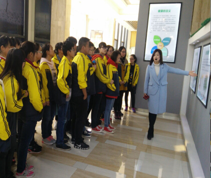 此次参馆学习的是黄陂区六中的师生,大约80余人,首先在我们讲解员的带领下学校领导和学生们依次参观了一楼大约1000平方米展厅中的人类健康理念、人与自然、生命之殇、生命之重、健康生活、突发公共事件自救演练、生命之光七个展区及二楼大约500平方米展厅中的茶文化、健康加油站、中医健康养生、生命之环,同时在新建的科普互动区亲身体验了“指标能力测试”、“科学点餐”、“家庭小药箱”、“家庭小医生”等,让大家感受到了科普健康体验的趣味性和重要性。