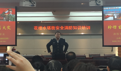 为了让辖区单位更加了解防火、用气用电,安全自救及消防器材使用等方法和技技。3月24日上午,江汉区花楼水塔街街科协和安全管理中心组织召开辖区单位、社区群干50余人参加的消防安全知识培训,由市消防大队徐德俊教官,讲解消防知识及消防器材:如灭火器、消防栓等正确使用方法。教大家如何掌握一些火场自救的要诀和逃生的办法;学员听后反映良好。