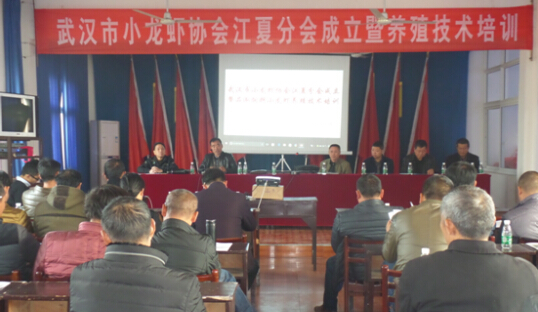 近日,武汉市小龙虾协会江夏分会成立暨养殖技术培训会在江夏区法泗街召开,武汉市小龙虾协会会长陈忠生、协会秘书长邵甫生、协会副会长刘汉波出席了会议。江夏区各街道小龙虾养殖户、养殖合作社代表60余人参加了会议。