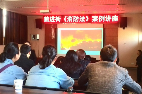 2016年4月19日上午,江汉区前进街邀请湖北诺亚律师事务所彭仁高律师在前进街会议厅开展了《消防法》案例讲座,前进街办事处的领导及全部党员干部、各社区干部以及安全生产工作的相关人员等120余人参加了学习。