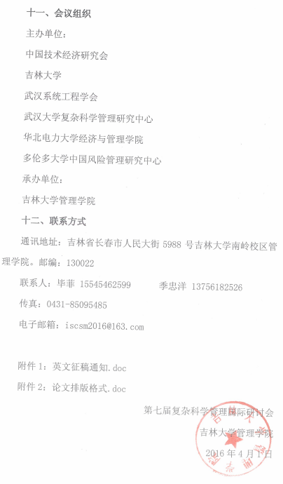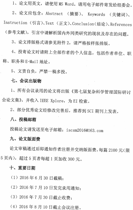 第七届复杂科学管理国际研讨会征稿通知