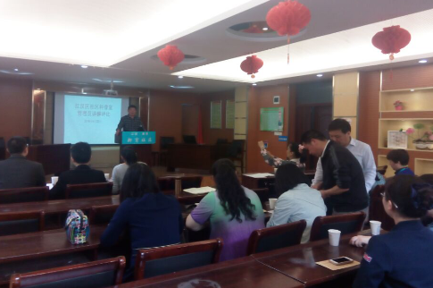 2016年4月22日上午9时,江汉区社区科普室管理员讲解评比活动,在新华街新育社区二楼党员群众多功能室举行,这是一次以讲解评比为交流的培训活动。参加此次活动的有区科协主席钟家伟,街道组宣科工作人员,6个有社区科普活动室的12名管理员等等人员。