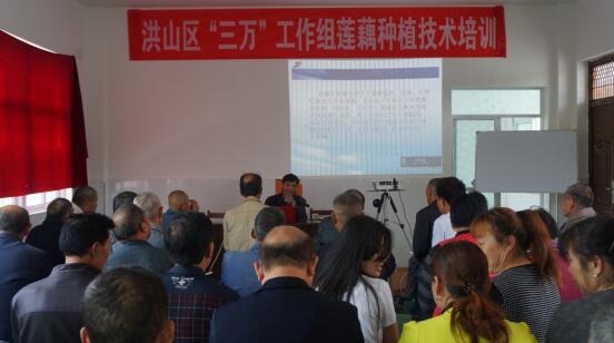 4月22日上午,在刘六村小学教室里,洪山区总工会、区科协“三万”驻新洲区邾城街刘六村工作组开展了莲藕种植技术培训,特邀武汉市农科院蔬菜科研所总农艺师傅新发为刘六村50多户莲藕种植户进行了莲藕种植技术培训。邾城街驻刘六村精准扶贫工作组领导主持了此次培训并提出了工作要求。