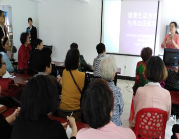 下午3点,活动室坐满了前来参加讲座的居民们50多人,大家在居委会工作人员的指导下,每人认真填写了一份《高血压常识调查问卷》。李老师用投影仪为大家展示了高血压发病原理,发病症状,生活中引发高血压的危险因素及危害、高血压患者的用药和日常保健、专业的医师,用通俗生活化的讲解,图片的诠释,深入浅出,让大家轻松地接受到与自身息息相关的科学知识,大家还积极参与老师的提问,进行了很好的互动,大家认真地听、认真地做笔记,深受益处。