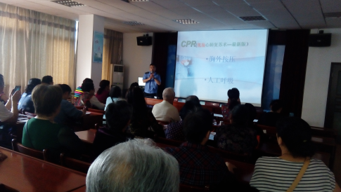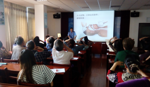 课件内容丰富、贴近生活,从紧急救护、空气污染对人体危害、职场健康的生活方式、经络穴位养生、职业病的防治到家庭医疗设备的配备,一一细细讲解,老人们听得聚精会神,并不时举手提问,低头记笔记,认真程度不亚于一位小学生,接地气的课件和老师清晰的表达,让大家非常享受这个学习过程。