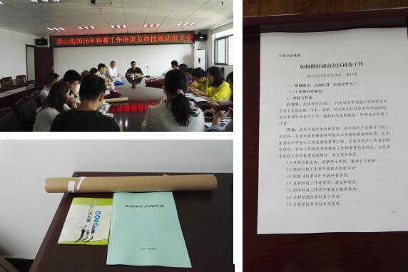 培训课结束后,洪山街科协秘书长就今年科协的工作、科技活动周的工作做了布置。同时还发放了科普小常识的宣传册及挂图万份,让各社区在即将到来的科技活动周期间向居民发放。